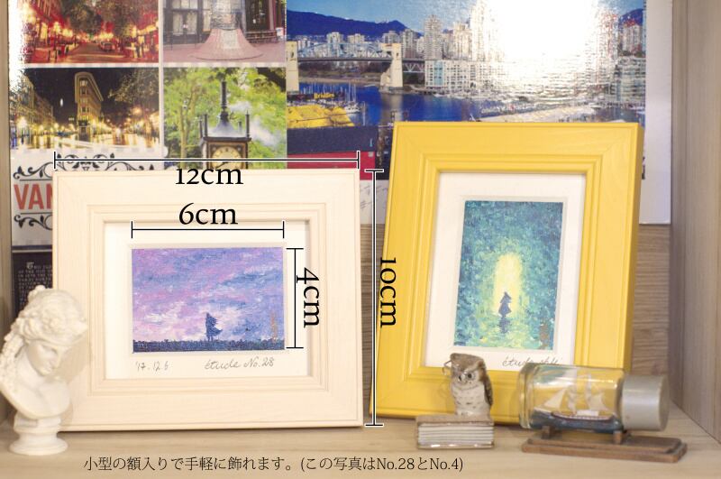 手軽に飾れる小さな額入りの油彩画