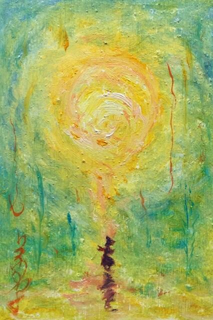 木板に油彩、額装。
