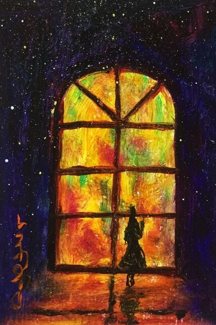 手軽に飾れる小さな額入りの油彩画