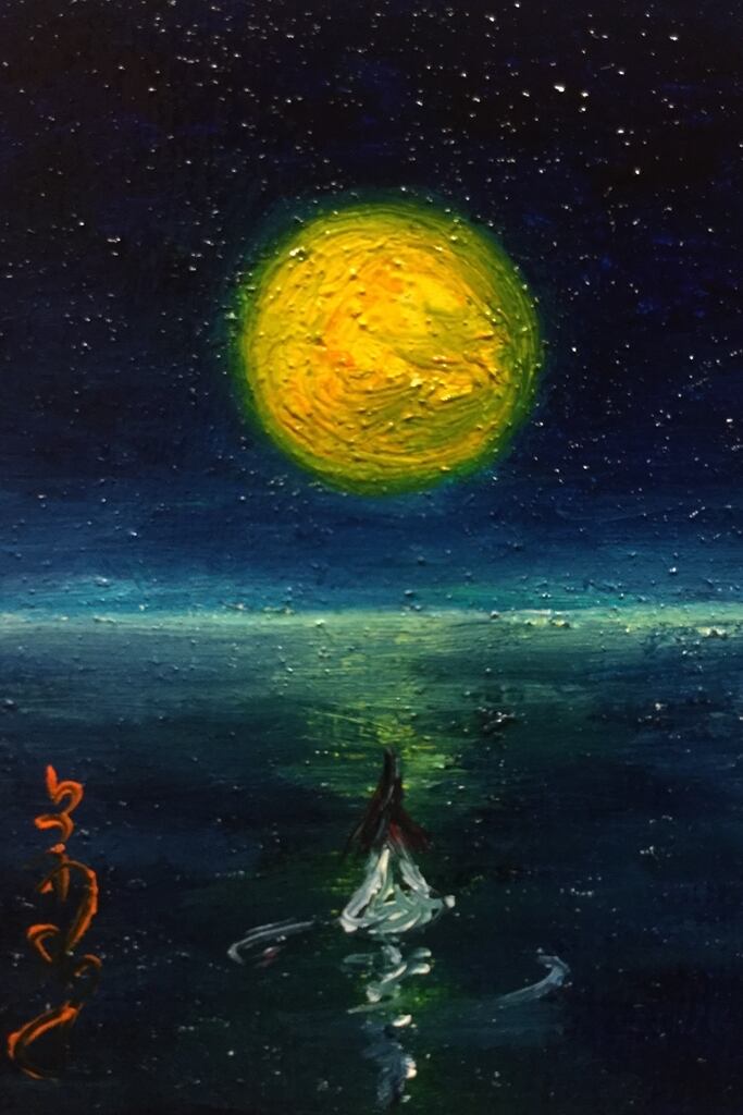 木板に油彩、額装。
